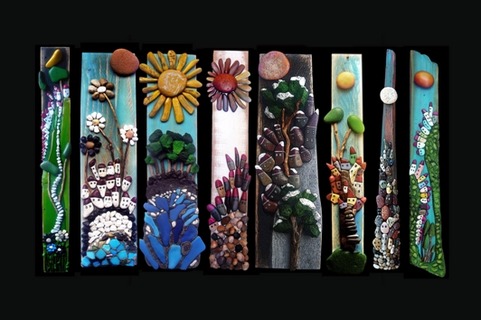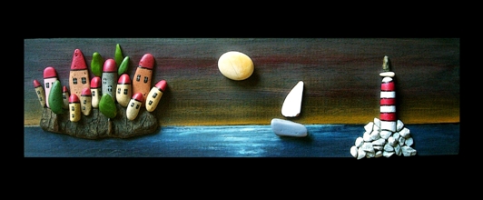 "E’ una passione nata per caso e cresciuta smisuratamente negli anni, i sassi sono il materiale più comune dell’universo, un supporto fantastico, sempre diverso, facile da reperire e di poco costo. Un tempo selezionavo i sassi con cura, tenevo conto della loro forma, delle dimensioni, del colore adesso… mi vanno quasi tutti bene. Con il tempo ho capito che anche i sassi più anonimi possono trasformarsi in qualcosa, l’importante e riuscire a trovare la giusta intuizione, riuscire a “vedere” l’anima nascosta e avere un po’ di immaginazione. Questo qualche volta avviene subito, altre volte mi occorre più tempo, ma so per certo che quel sasso qualcosa mi comunicherà. E’ un rapporto istintivo quello che ho con le pietre, vengo letteralmente rapita dalla forma di alcuni sassi, e con un po’ di fantasia ho percepito una nuova linfa artistica: è stato un vero e proprio bagliore di luce che ancora mi sorprende".