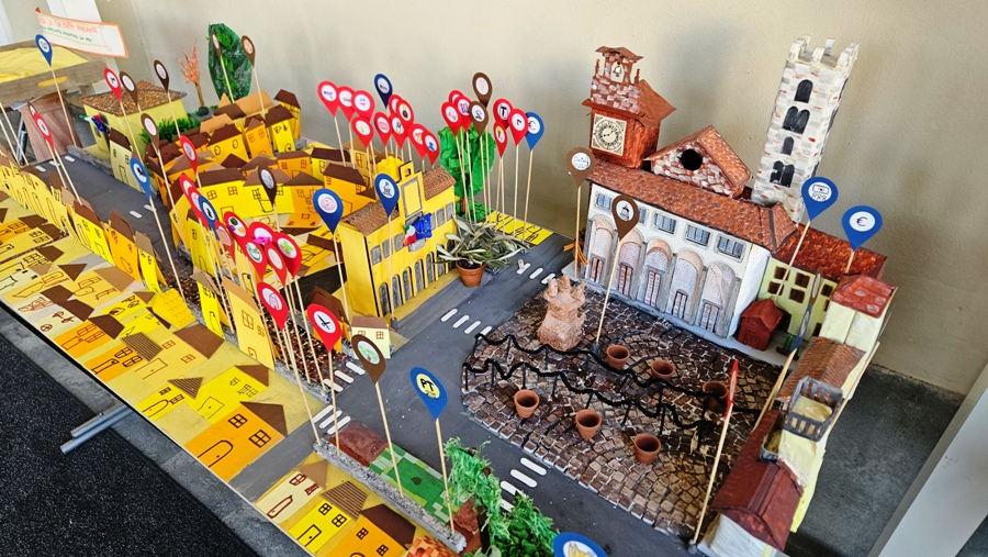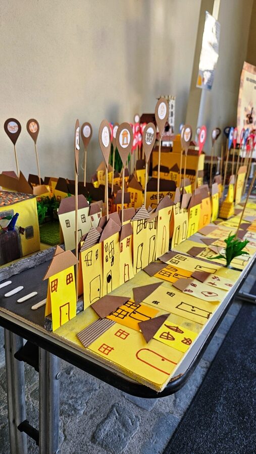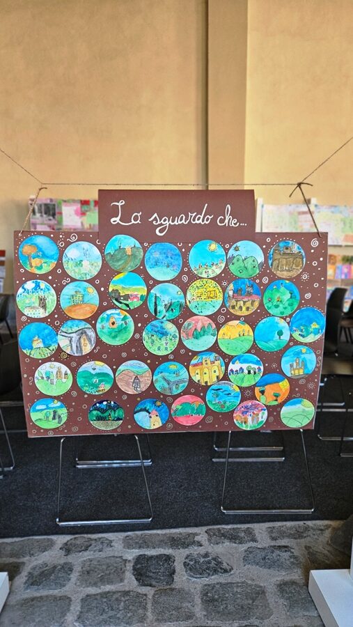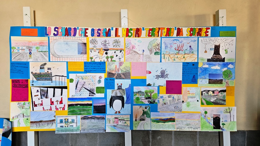 Il percorso espositivo attraversa luoghi simbolici — dalla scuola alla piazza, dal fiume al paesaggio — e coinvolge anche gli studenti più grandi.