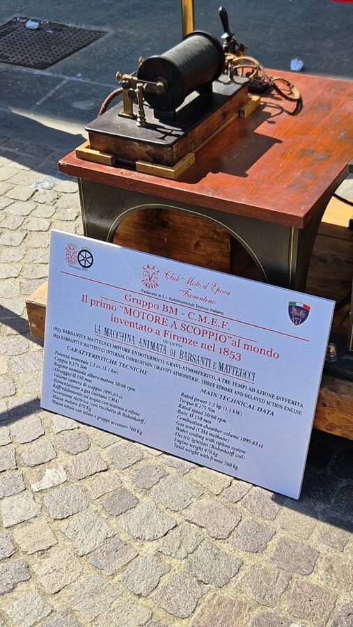 Grande stupore questa mattina quando, in piazza Buondelmonti, è stato avviato il motore Barsanti‑Matteucci grazie ai soci del CMEF – Club Motoristico Fiorentino.