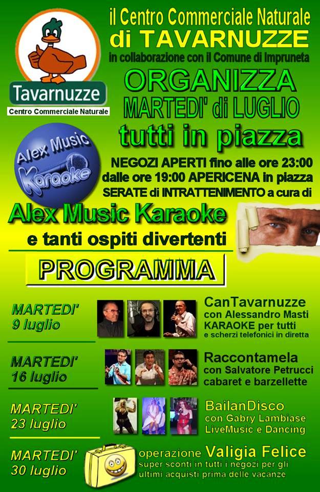 TAVARNUZZE (IMPRUNETA) – I prossimi 9, 16, 23 e 30 luglio la piazza di Tavarnuzze ospiterà la prima edizione della manifestazione “Martedì di Luglio”.