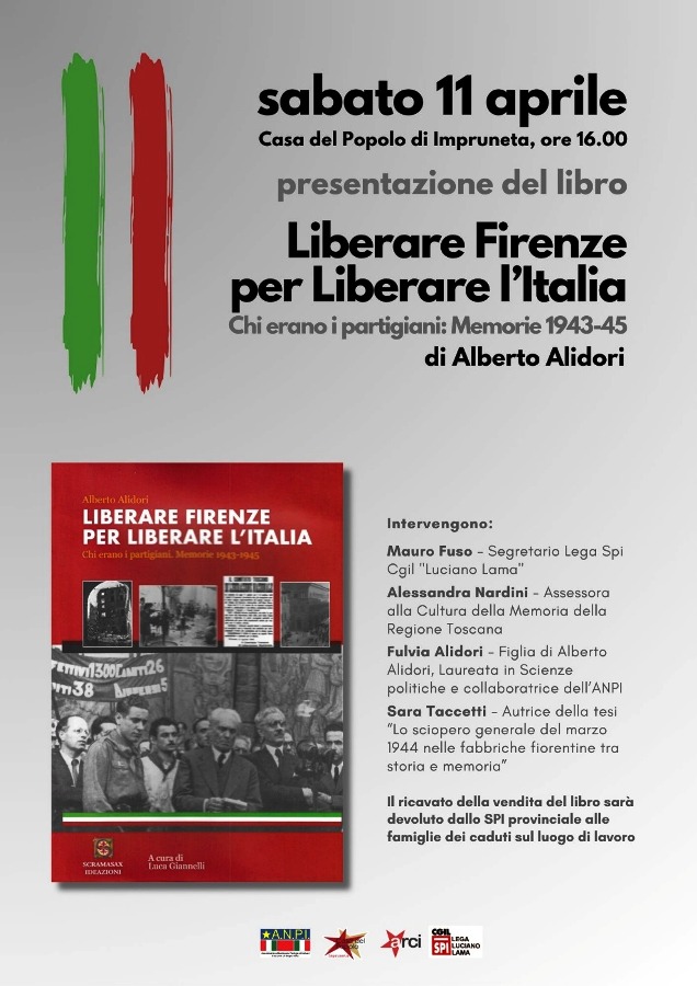 All’incontro saranno presenti Mauro Fuso, segretario della Lega Spi Cgil “Luciano Lama”, Alessandra Nardini, assessora alla cultura della memoria della Regione Toscana, Fulvia Alidori, figlia dell’autore e collaboratrice Anpi, Sara Taccetti, autrice di una ricerca sullo sciopero generale del marzo 1944 nelle fabbriche fiorentine.