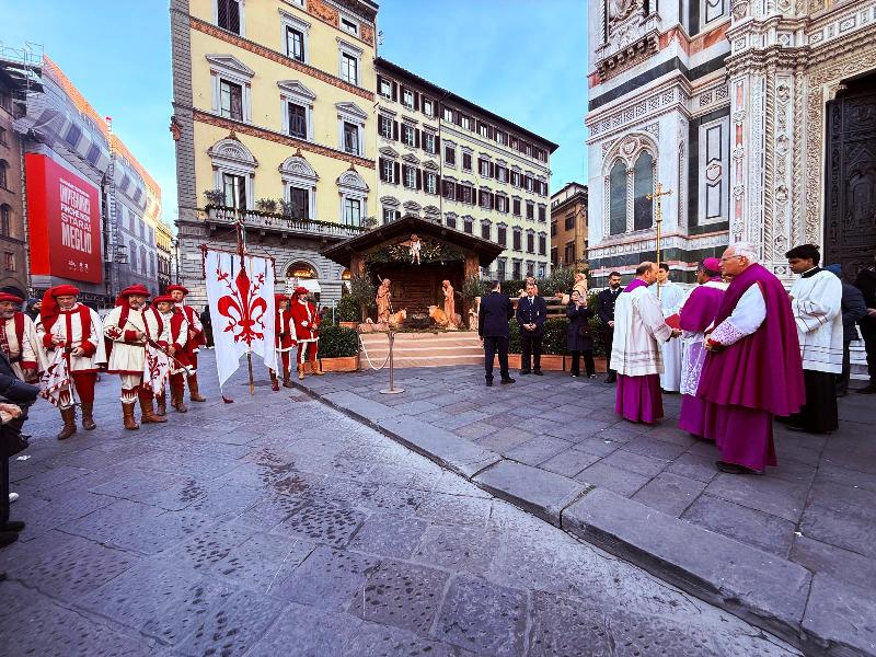 Ieri, lunedì 8 dicembre, Immacolata Concezione, la consueta benedizione del Presepe sul Sagrato di Santa Maria del Fiore da parte dell’arcivescovo Gherardo Gambelli, alla presenza anche dello stesso Mariani, che rinnova il valore e il significato di tale opera.