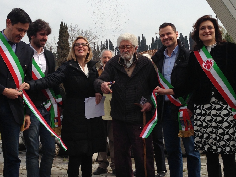 Prima di spostarsi al Teatro moderno di Tavarnuzze, dove si è tenuto un incontro con l’artista con una "ricognizione" delle sue opere, si procede con il taglio del nastro, tanto atteso e desiderato.