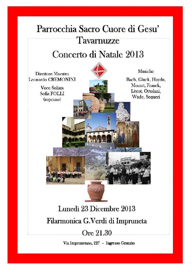 Infine, lunedì 23 dicembre alle 21.15 in chiesa ci sarà il Concerto della Filarmonica G. Verdi di Impruneta con la collaborazione del soprano Sofia Folli.