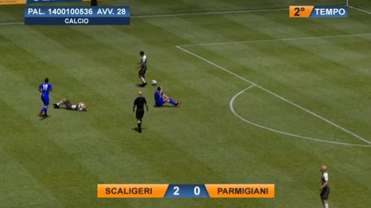 Alzo lo sguardo e sopra la postazione scommesse vedo una sorta di partita di playstation: due squadre, che hanno gli stessi colori ma non i nomi ufficiali delle squadre di calcio di serie A (questioni di diritti e di quattrini penso) che si sfidano.