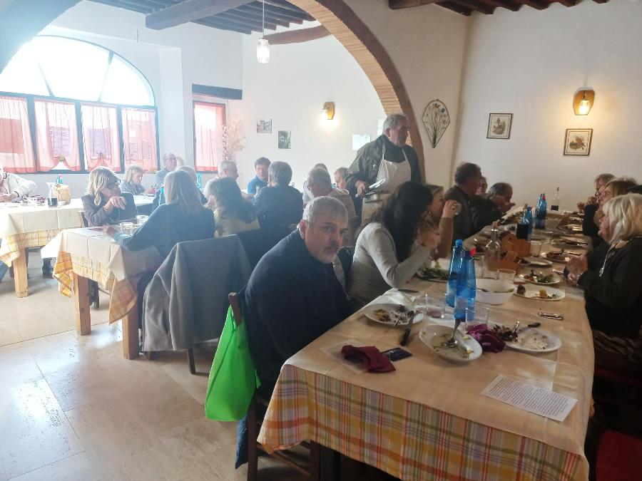 Il gruppo, poi si era dato apputtamento a Gerfalco dove una suntuosa zuppa di castagne e un altrettanto eccellente arrosto girato ha fatto da cornice a una giornata che unisce, come nelle migliori tradizioni, storia ed enogastronomia.