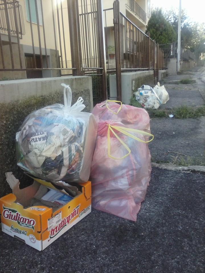 Ci fanno mettere la spazzatura fuori dalla porta e non passano nemmeno a ritirarla lasciando lo spettacolo desolante. Grazie dell attenzione. Spero vivamente di rendere pubblica questa foto. Saluti.