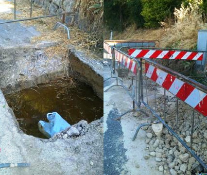 Volevo segnalare dei lavori di Publiacqua in via Mazzini, a Strada in Chianti: hanno aperto una buca per una riparazione di una tubatura rotta ma dopo una settimana la buca è piena d'acqua e dal giorno dopo l'apertura della buca gli operai sono spariti.
