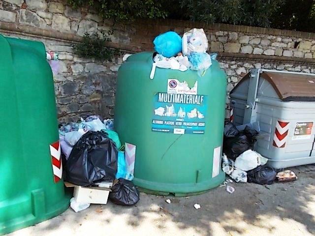 Però basta fare due passi, per avere chiaro lo stato della situazione: alcuni contenitori straripano, altri un po’ più in disparte sono quasi o completamente vuoti.