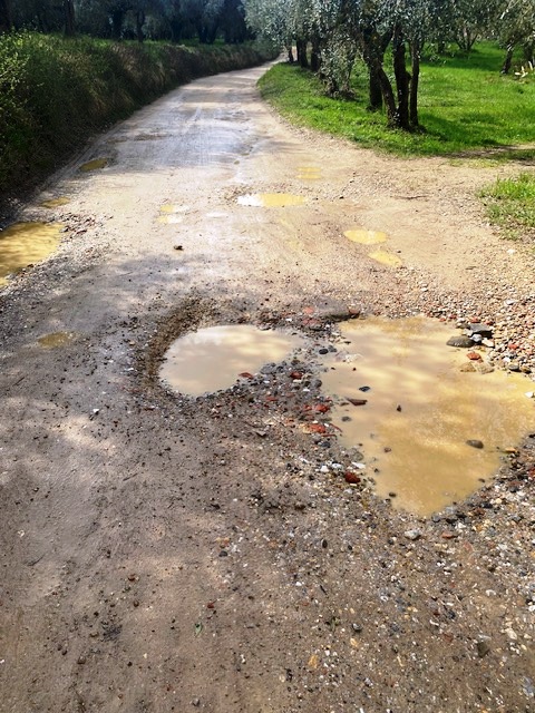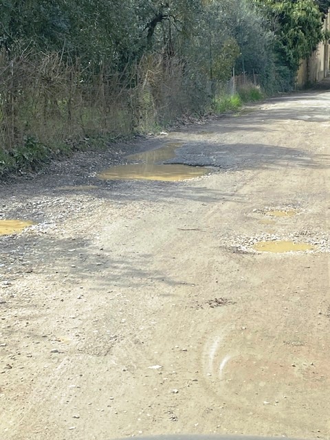 Sono mesi che non viene nessuno dal Comune a riparare questa strada, sebbene sia di loro proprietà.