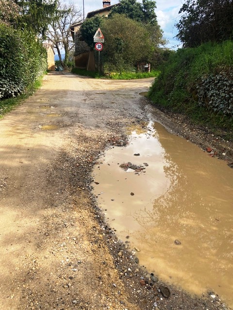 Noi abitanti di via Molamezza, a Mercatale, non riusciamo a raggiungere le nostre abitazioni a causa dello stato degradato della strada.