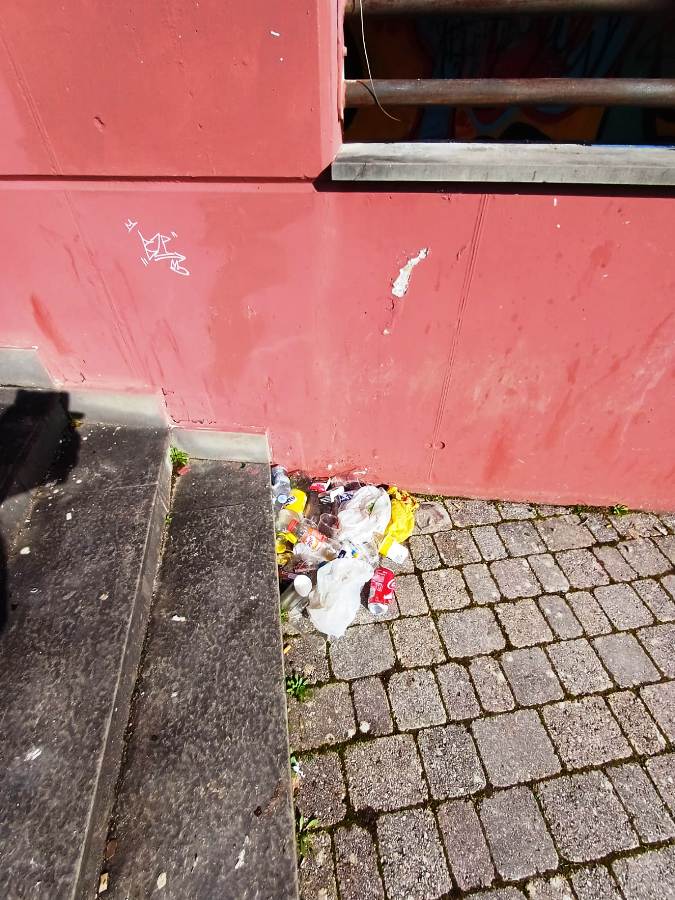 Oltre al danno, al decoro, c’è sporcizia dappertutto, e vetri spaccati sul tutto il piazzale dove dovrebbero giocare bambini e dove la gente passeggia con il cane.
