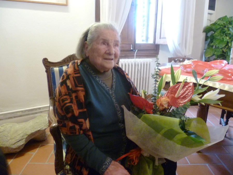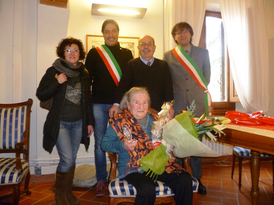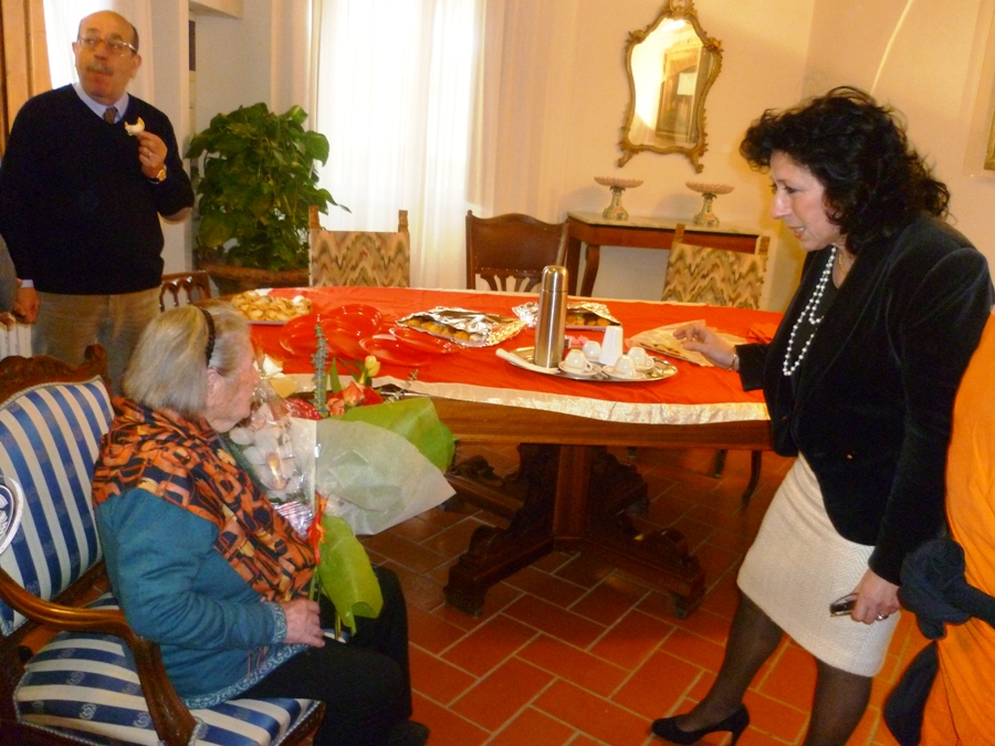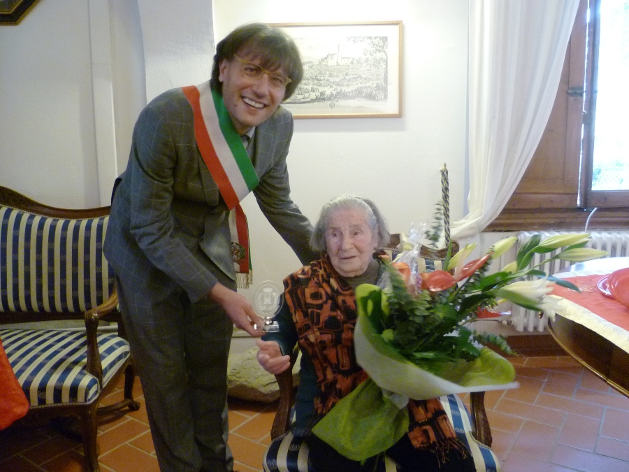 In anticipo al festeggiamento "ufficiale", ma proprio nel giorno del suo compleanno, sono andati a trovarla ben due sindaci: Alessio Calamandrei, quello di Impruneta, suo attuale comune di "residenza"; e Massimiliano Pescini, quello di San Casciano, suo comune da sempre. Che le ha portato dei fiori e lo stemma del suo paese.