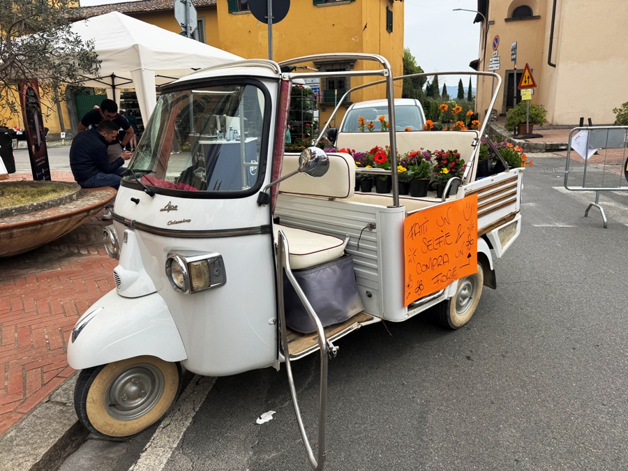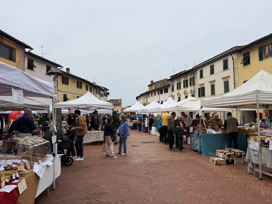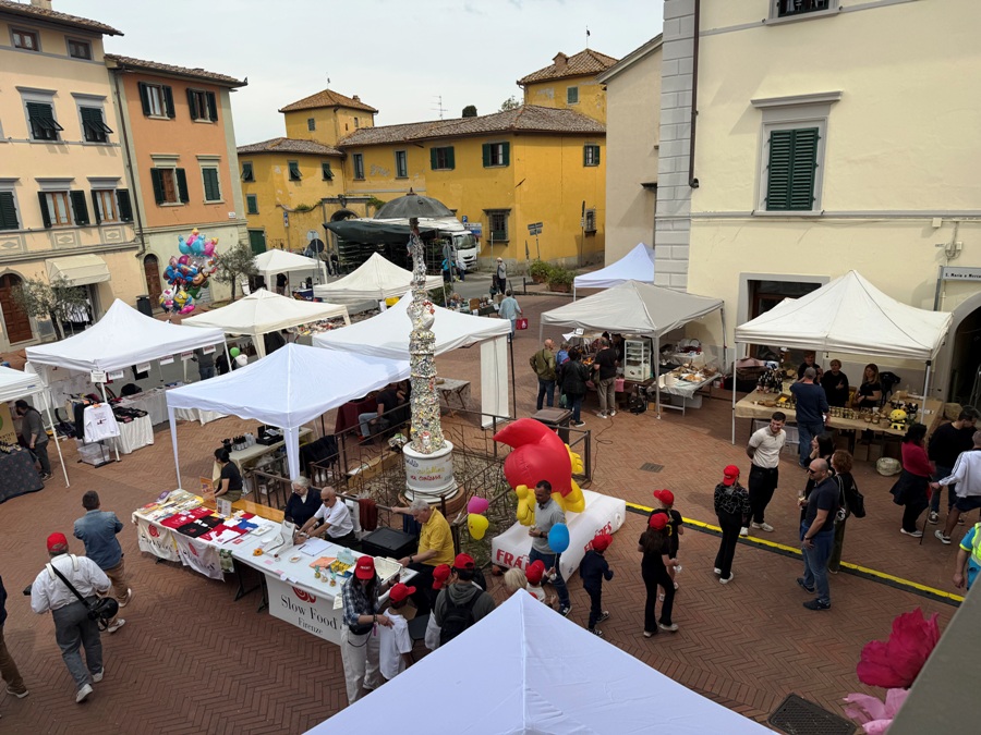 Mentre in piazza Vittorio Veneto i volontari della Protezione civile di Mercatale preparavano gli spritz, il gruppo del “Mercantiere” i bomboloni caldi (vuoti e alla crema), in piazza del Popolo addobbavano la piazza due trattori, moto e bici d’epoca. Immancabile, tra gli oltre 40 banchi, il “brigidinaio”.
