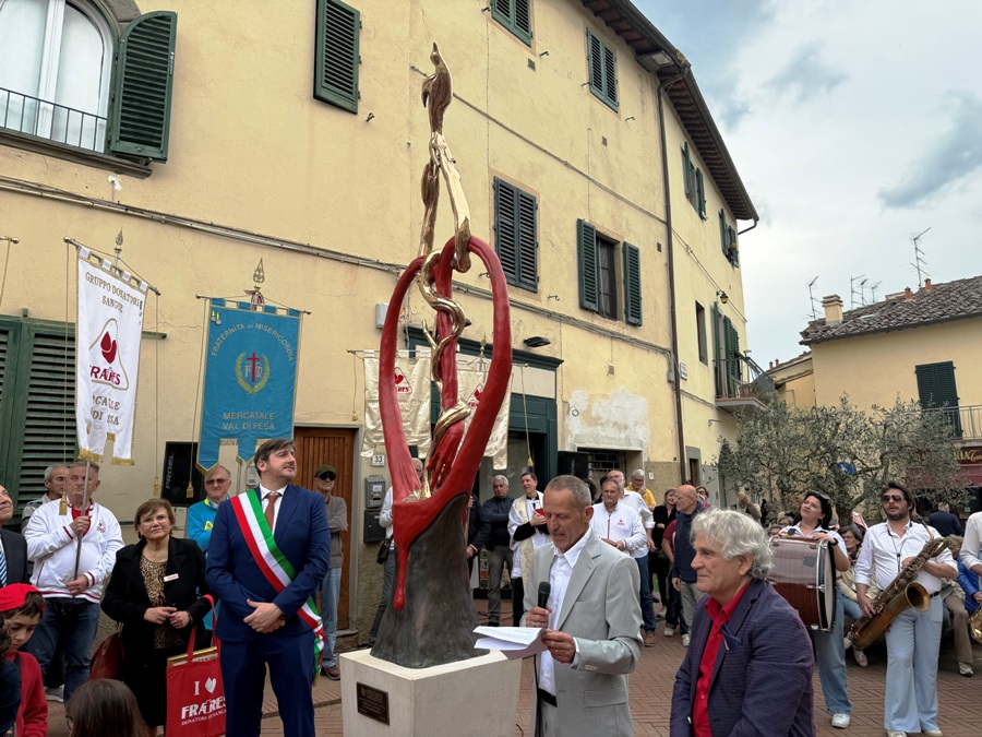 La statua è stata scoperta alla presenza del presidente del gruppo Fratres, che oggi comprende quello di Mercatale e San Casciano, Marco Piazzini, del sindaco Roberto Ciappi e dell’artista che lo ha realizzato Antonio Manzi.