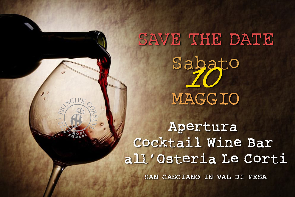SAN CASCIANO – Sabato 10 maggio dalle 19 in poi, apertura del nuovo Cocktail Wine Bar presso l'Osteria Le Corti, a San Casciano.