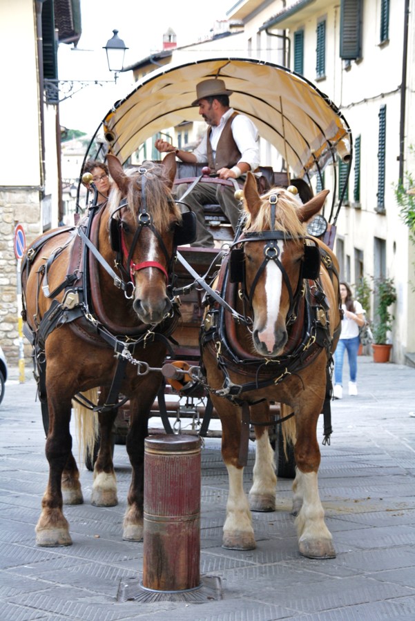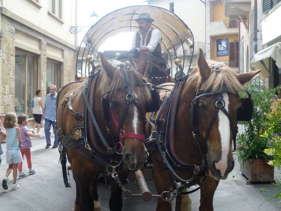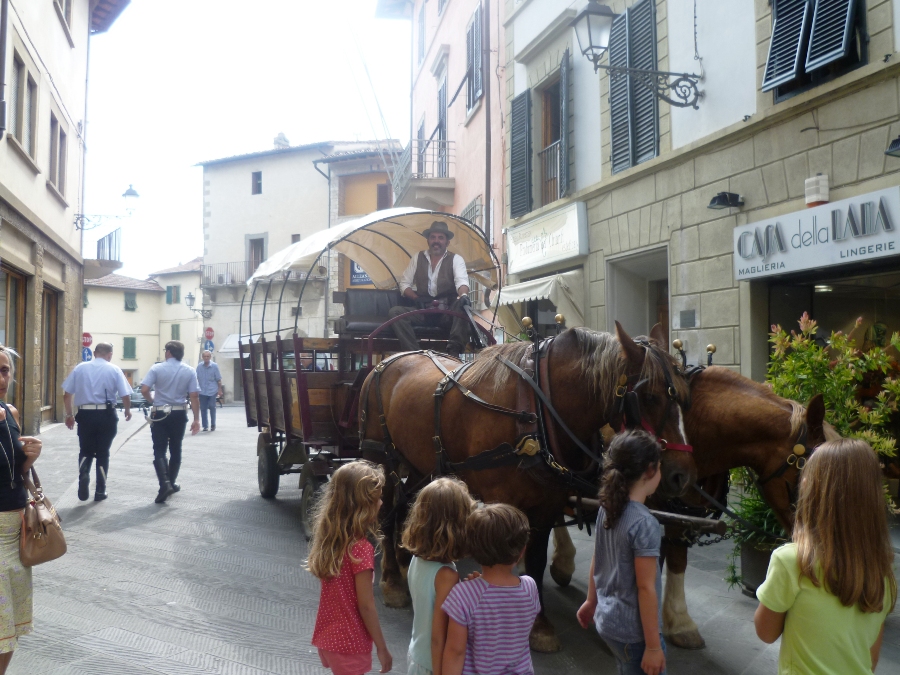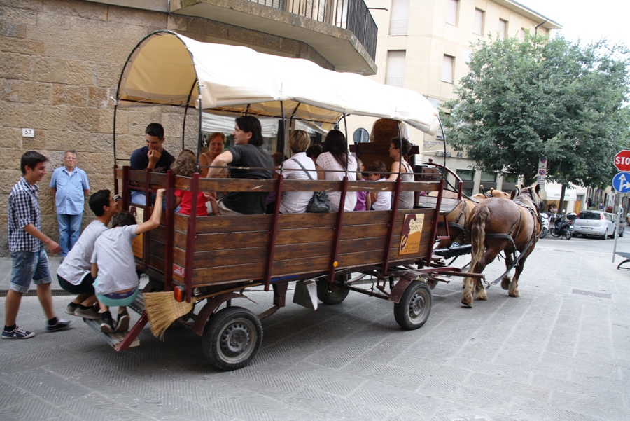 SAN CASCIANO – I più contenti sono stati i bambini che oggi pomeriggio si sono visti "piombare" nel centro storico di San Casciano due cavalli e un carro… tutti per loro (vedi foto).