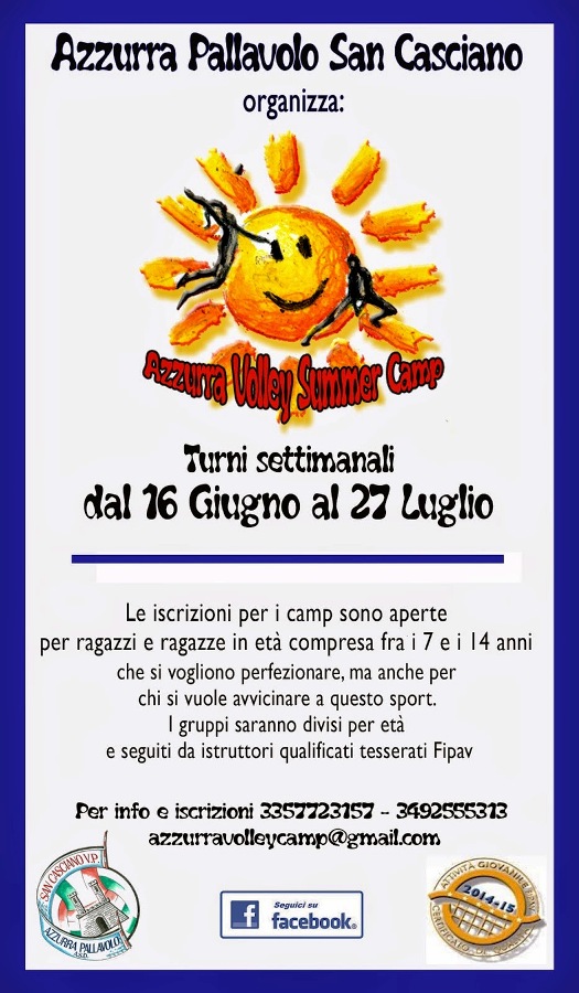 SAN CASCIANO – Sono aperte le iscrizioni agli "Azzurra Camp", i campi estivi organizzati dall'Azzurra Pallavolo.