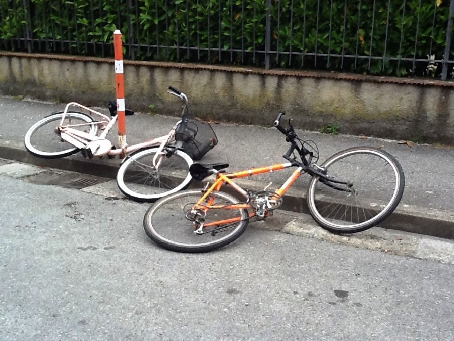 Sono due da donna e una da ragazzo, abbandonate per terra senza cura. Probabilmente sono l’esito di una “notte brava” da parte di qualcuno, forse rubate per andare a spasso e poi gettate dove capitava.