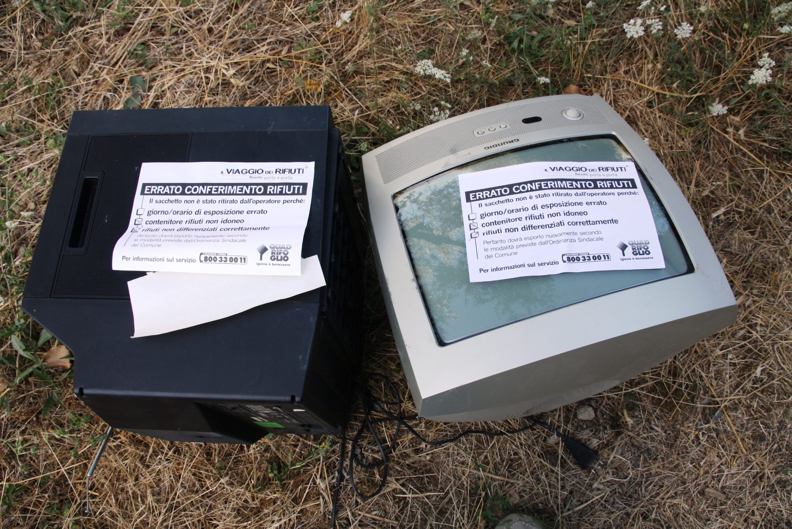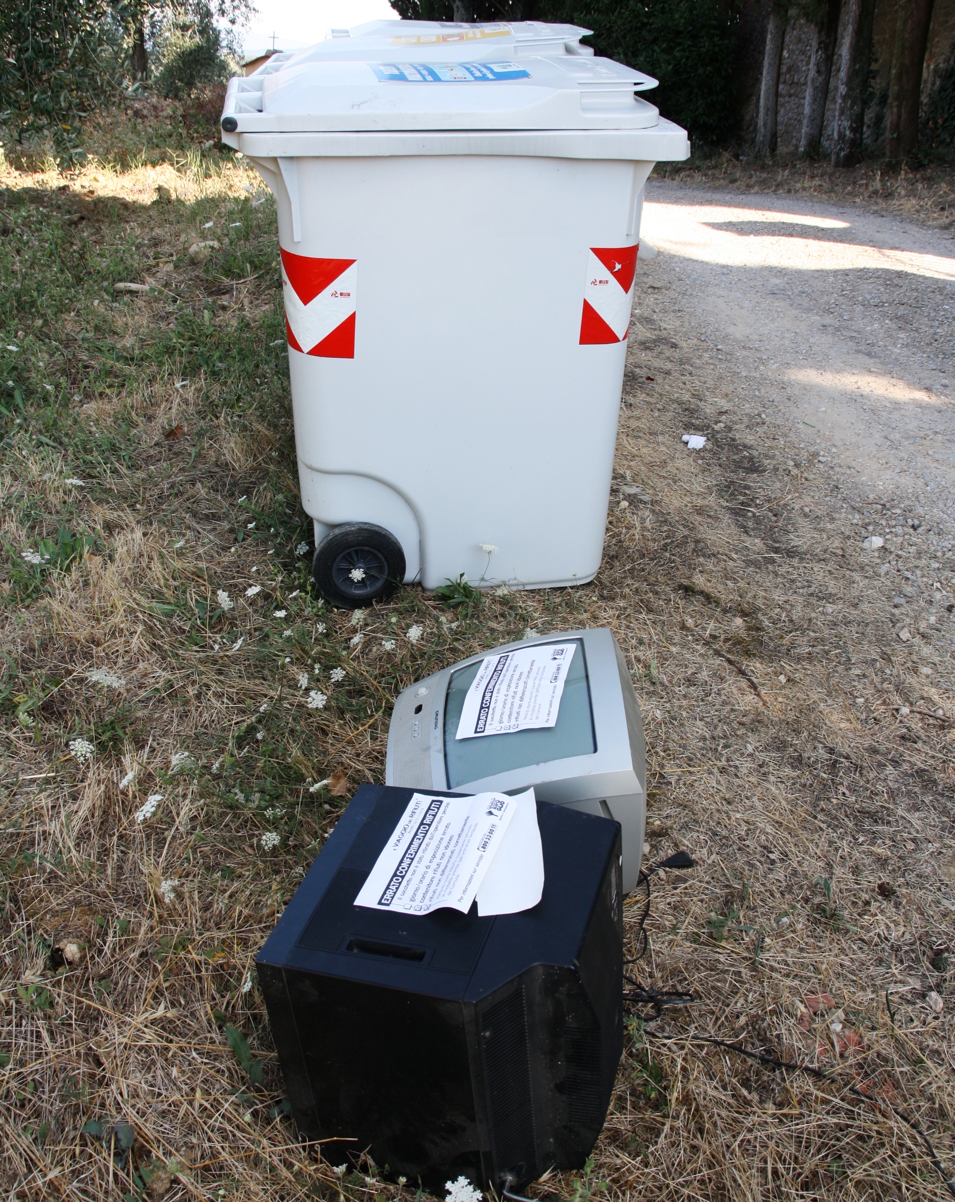 E’ quanto ci ha segnalato una nostra lettrice che abita in una zona dove, per ovvi motivi, non è possibile collocare i classici cassonetti, ma sono sufficienti i bidoncini più piccoli (vedi foto).