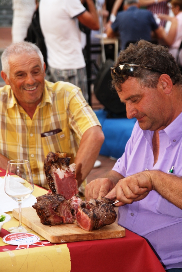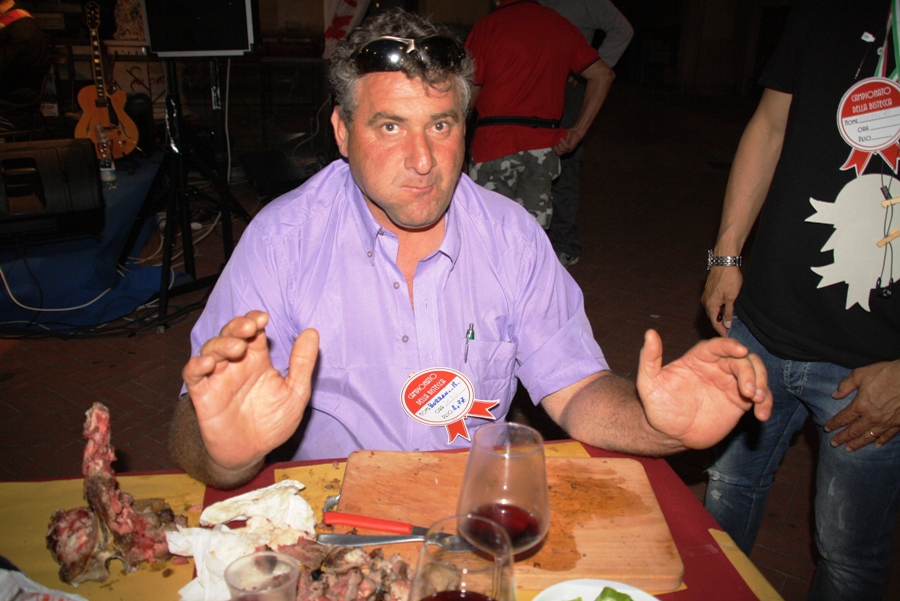 Ed è stato proprio quest’ultimo Alessandro (vincitore dell’edizione 2013) di Cerbaia che è riuscito a battere il primato mangiando l’enorme bistecca di 3,92 Kg in 94 minuti. Non certamente da meno Burroni che ha mangiato la sua bistecca di 2,77 Kg in 87 minuti mentre Danilo ha mangiato in 67 minuti la bistecca di 2,68 Kg.