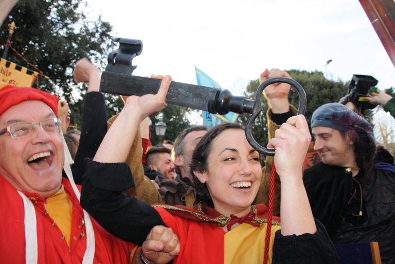 La contrada del Giglio rovescia la realtà e vince la quarta edizione del Carnevale Medievale di San Casciano (le foto sono di Antonio Taddei).