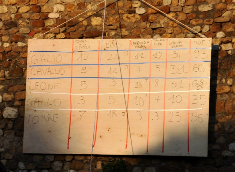 Il Giglio ha sbaragliato gli avversari ottenendo 93 punti. Seguono Cavallo (66), Leone (65), Torre (56) e Gallo (35).