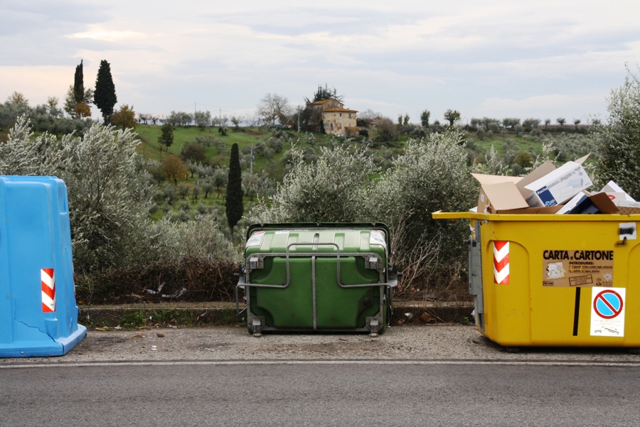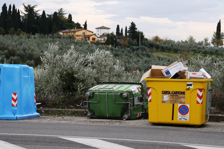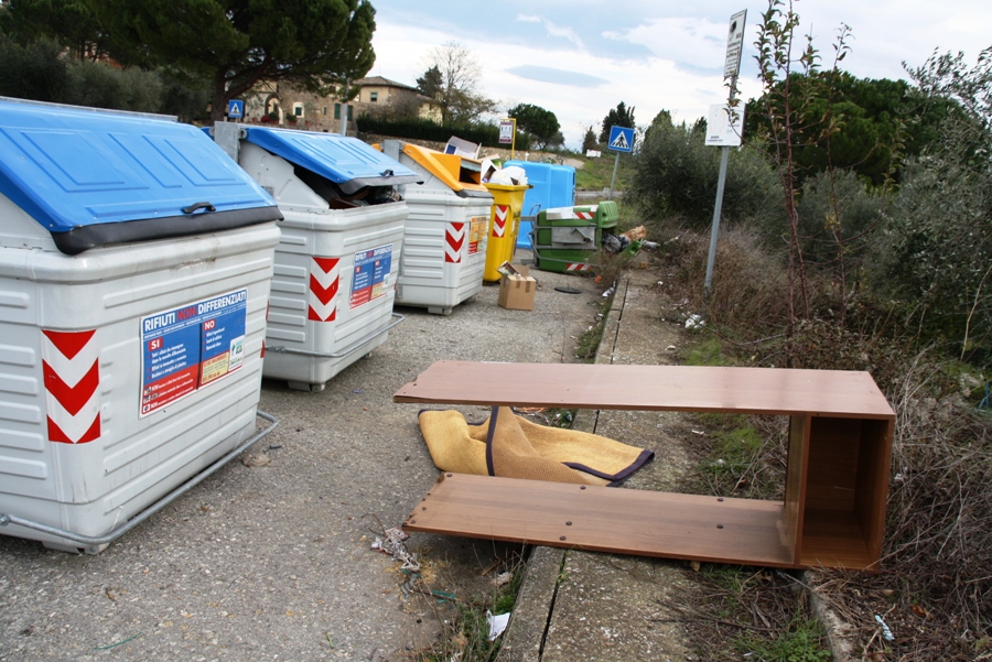 Mentre tutto intorno, ma questo non a causa del vento ma… dei soliti maleducati, si trova un po’ di tutto. Naturalmente e scrupolosamente fuori dai cassonetti, ovvio.