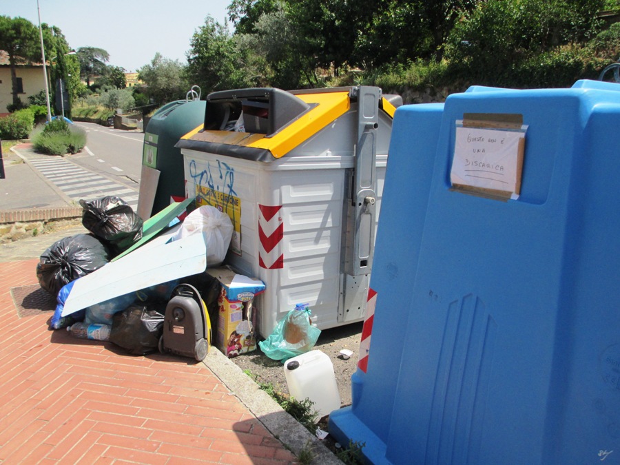 Anche in altre zone del paese abbiamo notato la stessa cosa e la soluzione non sembra facile da realizzare: probabilmente qualcuno suggerisce che dovrebbero passare più spesso a vuotare i cassonetti, e magari continuare a multare chi sconsideratamente abbandona i rifiuti dove fa più comodo.