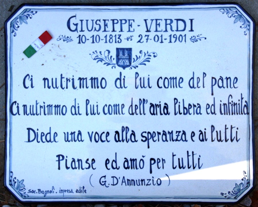 E così, arrivati all’anniversario dei duecento anni della nascita di Giuseppe Verdi, il suo estimatore Angiolino Bagnoli, assieme al Comune di San Casciano, il Corpo Musicale “Oreste Carlini” e il Comune di Busseto, domenica 13 ottobre saranno lieti di partecipare al seguente programma.