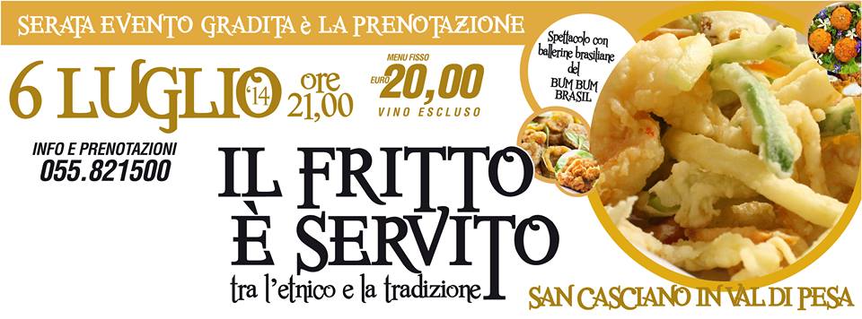 Domenica 6 luglio invece… a tutto fritto (con spettacolo di ballerine brasiliane Bum Bum… Brasil). Frittura a metà fra l'etnico e il tradizionale.