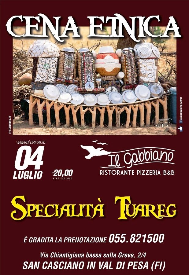 SAN CASCIANO – Una super cena etnica con specialità Tuareg… nel cuore del Chianti: andrà in scena venerdì 4 luglio al ristorante "Il Gabbiano", in via Chiantigiana Bassa sulla Greve 2/4.