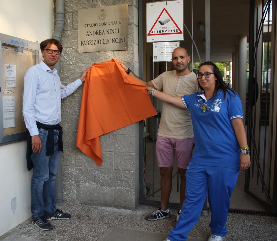 CERBAIA (SAN CASCIANO) – Una targa davvero speciale quella scoperta domenica 14 settembre allo stadio comunale di Cerbaia: collocata proprio sotto quella che intitola il campo sportivo alla memoria di Andrea Ninci e Fabrizio Leoncini, va a ricordare un altro personaggio davvero speciale che purtroppo non c'è più.