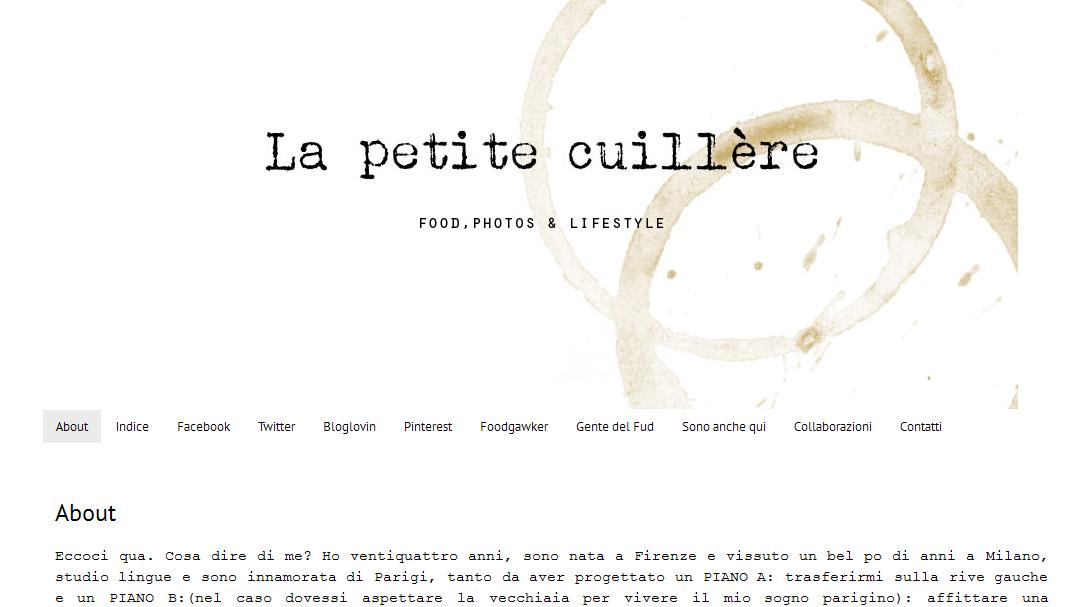 Da due anni ha il suo blog (http://petitecuilliere.blogspot.it/p/about.html) dove racconta di sé, della sua passione per la cucina, del suo amore per un piatto ben fatto. Sul social network "Gente del Fud", che valorizza i prodotti del territorio, ha un suo spazio in cui, come ci spiega, "ho indicato alcuni prodotti e produttori di San Casciano".