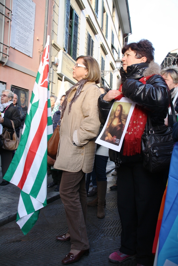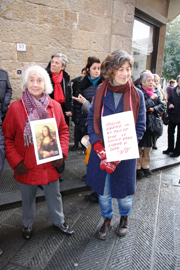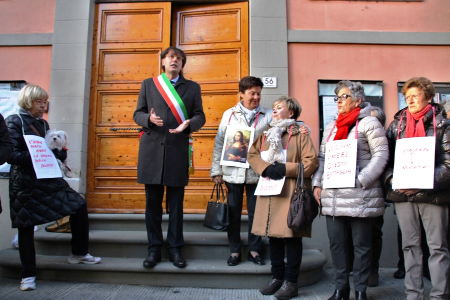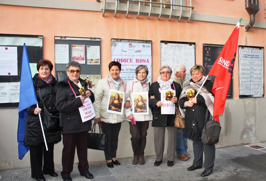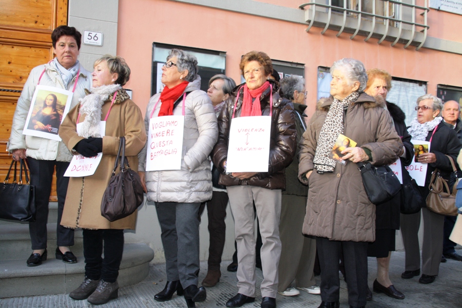SAN CASCIANO – Hanno preso come simbolo l’immagine de “La Gioconda” di Leonardo Da Vinci, con gli occhi lividi e la bocca imbronciata, le donne e gli uomini che nel pomeriggio di sabato 23 novembre si sono ritrovati davanti al palazzo comunale assieme alle sigle dei sindacati (Cgil Spi, Cisl pensionati), il Comune, Auser e Anteas, per la manifestazione pubblica contro la violenza sulle donne ed il femminicidio.