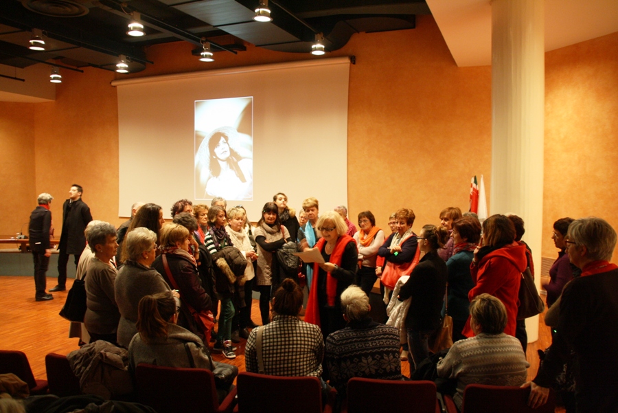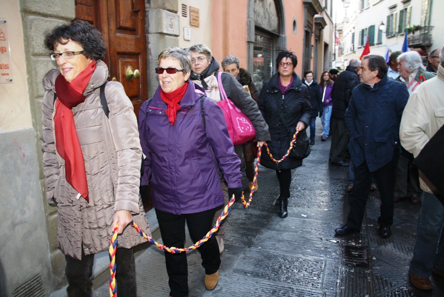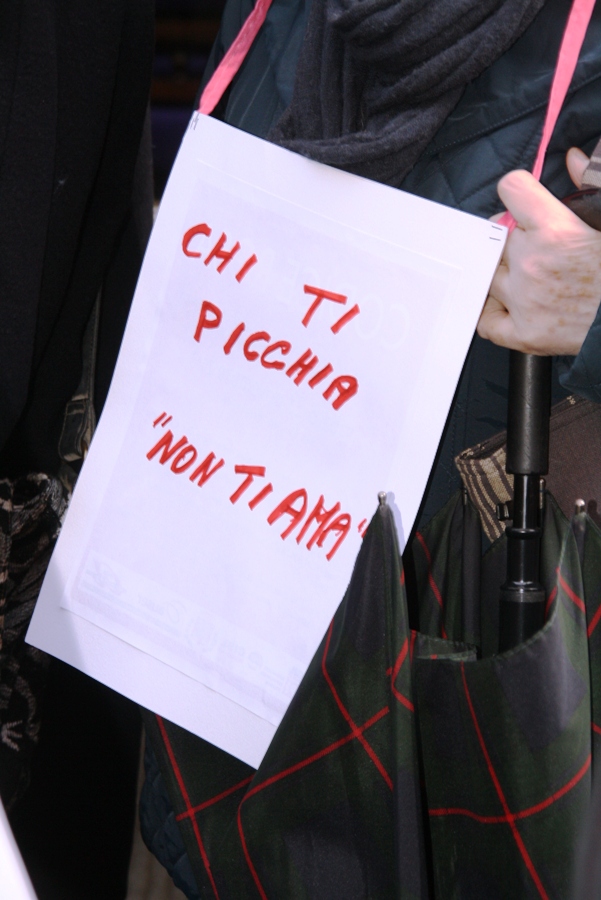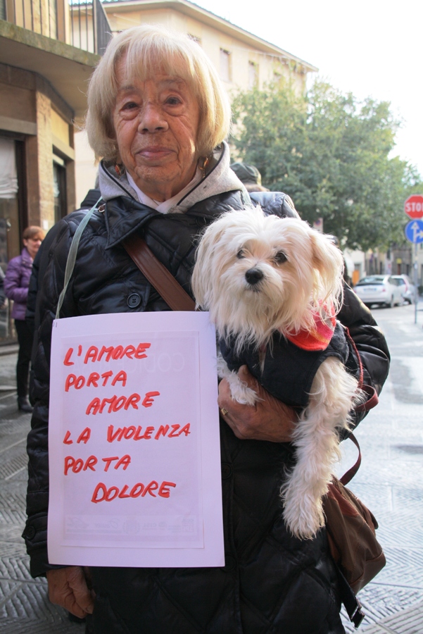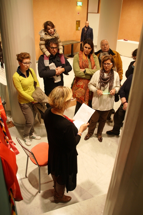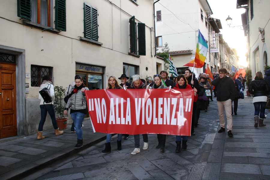 Il corteo subito dopo si è diretto presso l’Auditorium di ChiantiBanca, dove un gruppo di attori disposti in sei postazioni ha letto contemporaneamente dei brani. Storie vere, di vita, vissute da donne umiliate, violentate; brani in parte tratti dal libro di Serena Dandini “Ferite a morte” (Rizzoli).