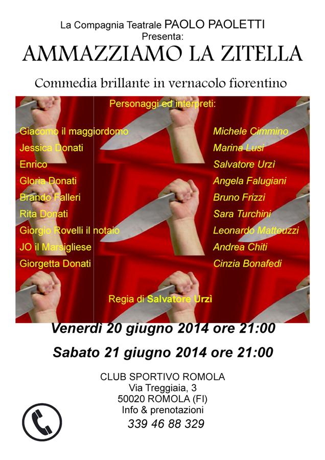 SAN CASCIANO – Venerdì 20 e sabato 21 giugno la Compagnia Teatrale "Paolo Paoletti" della Romola, porterà in scena una nuova commedia dal titolo "Ammazziamo la zitella", tre atti comici in vernacolo fiorentino.