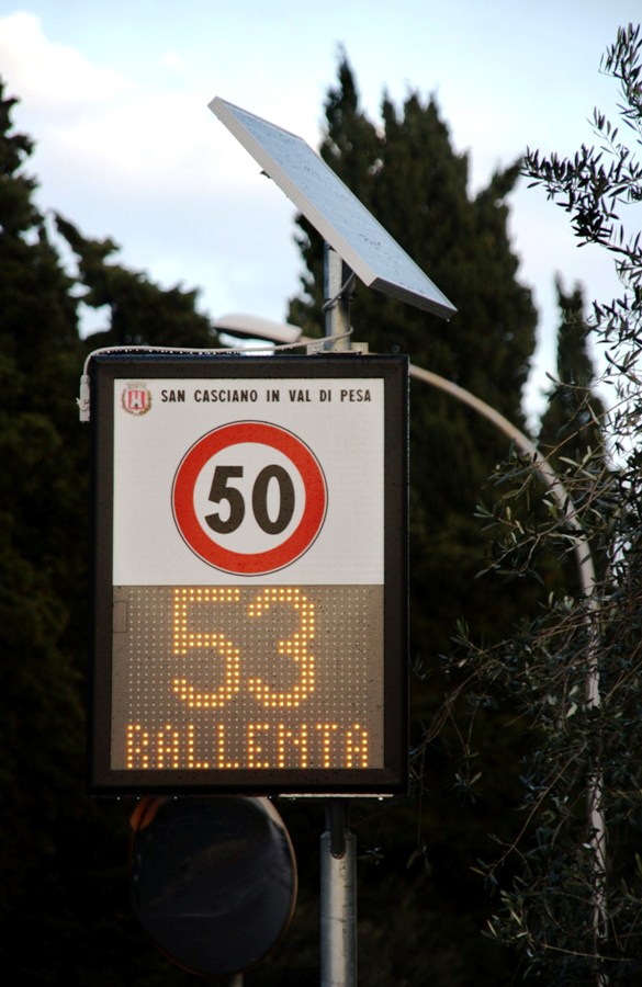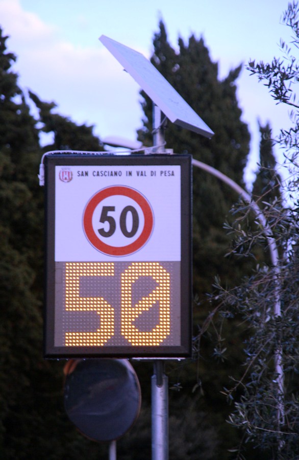 Si trovano all’ingresso del capoluogo e quasi tutte le frazioni del comune di San Casciano. Sul display è riportata la velocità in tempo reale.