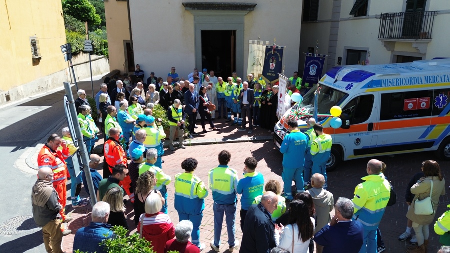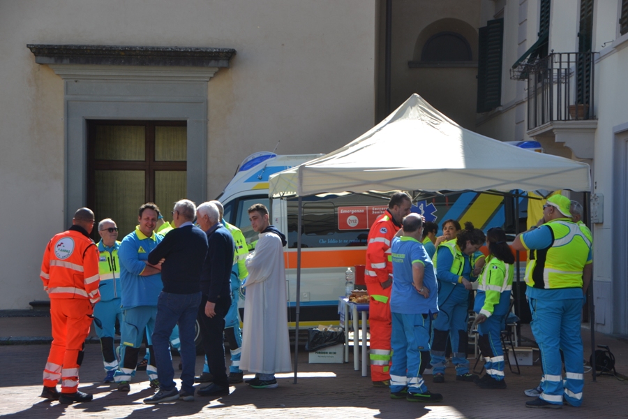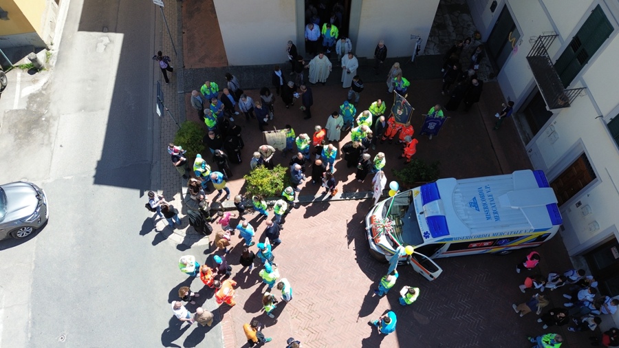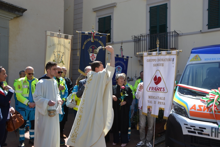 Al termine della celebrazione, tutti all’esterno della chiesa, dove si è inaugurata la nuova ambulanza della Misericordia di Mercatale.