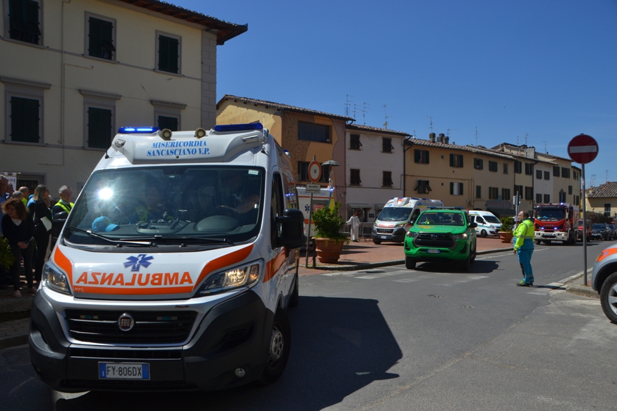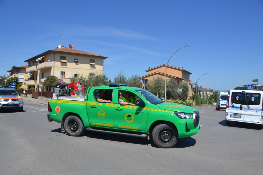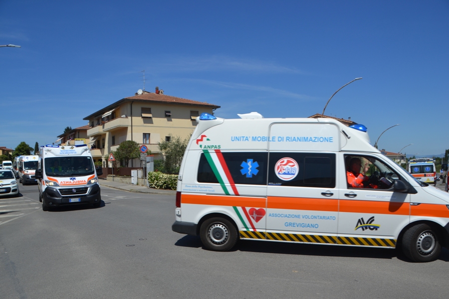 La sfilata era composta, in ordine, da: polizia municipale dell’Unione del Chianti Fiorentino, nuova ambulanza, ambulanza della Misericordia di Mercatale, mezzo dei servizi sociali di Mercatale, quad della Protezione Civile di San Casciano, quad della Misericordia di Figline Valdarno, Misericordia di Certaldo, Misericordia di Campi Bisenzio, AVG Greve in Chianti, Misericordia di San Casciano, Misericordia di Impruneta, Misericordia di Barberino Tavarnelle, Misericordia di Firenze, La Racchetta di San Casciano, vigili del fuoco di San Casciano. A chiudere il corteo, la Protezione Civile della Misericordia di Mercatale.