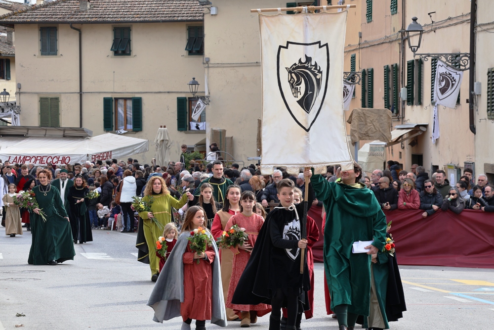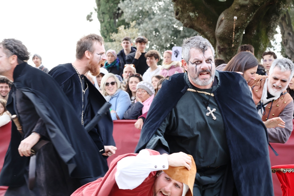 Carnevale Medievale Sancascianese 2026, trionfo della contrada del Gallo: la chiave del Castello è gialloblu