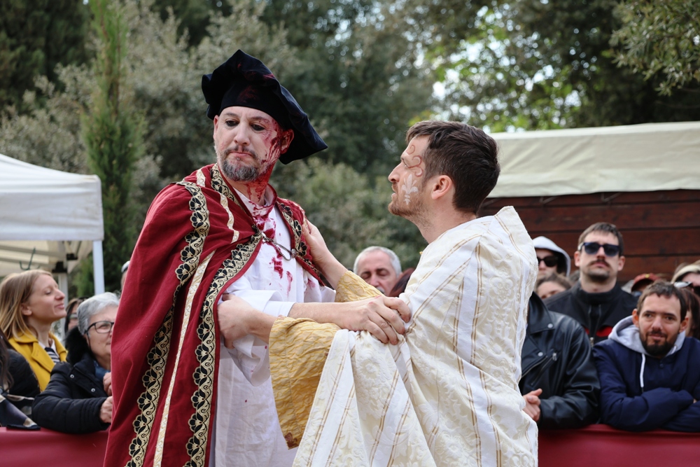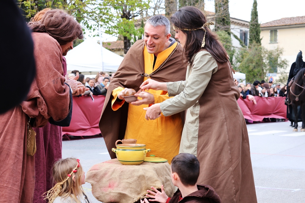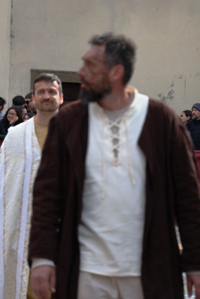 Quando l’armonia regnava tra il popolo, fino all’incursione di Fra’ Moriale, avventuriero, franco cavaliere, uomo ardito e famoso capitano di ventura. Che con i suoi sgherri mette a ferro e fuoco il borgo.