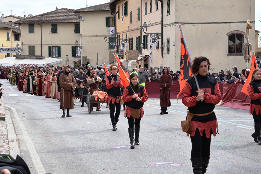 Carnevale Medievale Sancascianese 2026, trionfo della contrada del Gallo: la chiave del Castello è gialloblu