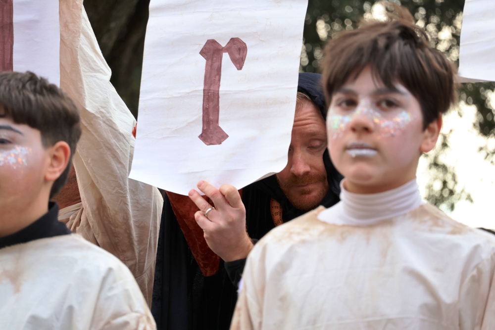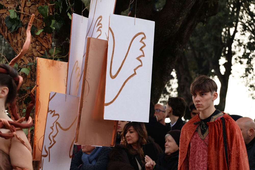 Rievocando in forma leggendaria l’origine della Carta di Fabriano, nel XIII secolo, ponendo al centro l’invenzione della filigrana come punto d’incontro tra tecnica e visione.