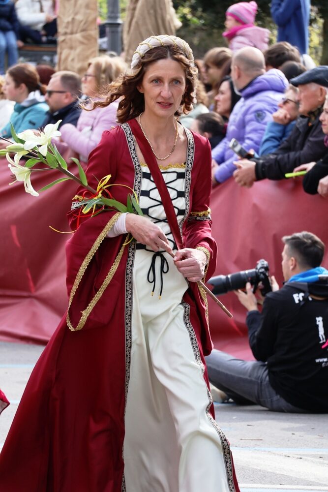 Sotto la guida della capo contrada Elisa Ferruzzi, la contrada di piazza Zannoni, via IV Novembre, via dei Fossi, Decimo, ha scommesso sul fascino di una figura senza tempo.