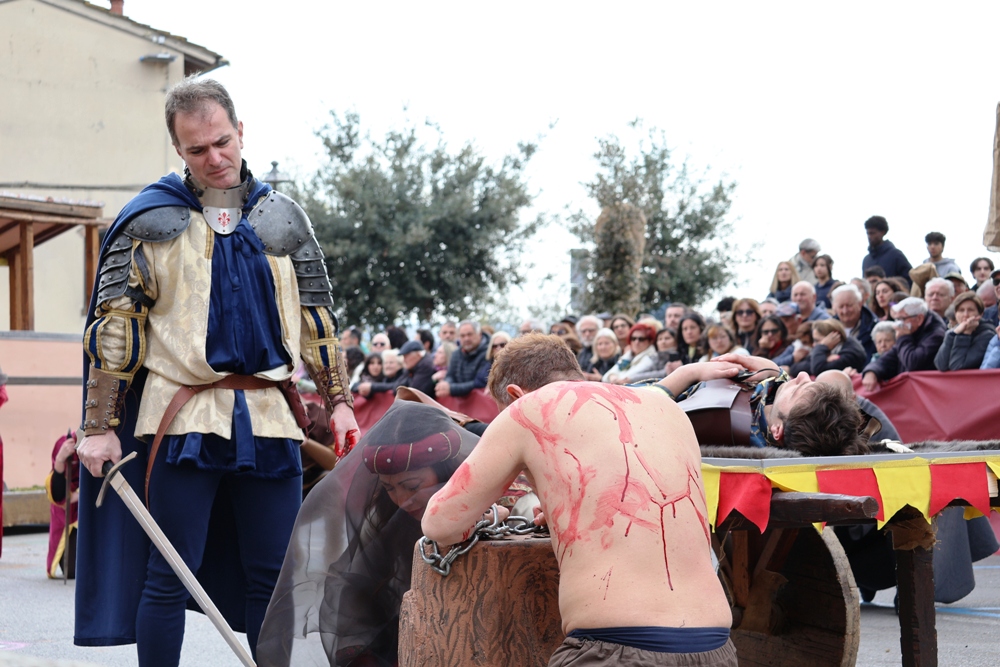 SAN CASCIANO – La forza del perdono, che interrompe violenze e vendette: è stato questo il filo conduttore dello spettacolo allestito per l’edizione 2026 del Carnevale Medievale Sancascianese dalla contrada del Giglio.