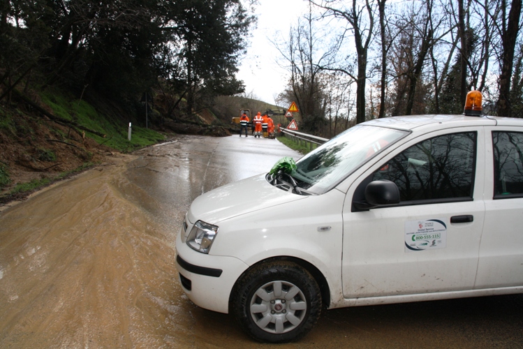 Infine, si è di nuovo "mossa" una delle frane storiche lungo la via Cassia per Firenze (trovate nelle foto anche questa): in questo caso disagi alla circolazione con senso unico alternato durante i lavori di limitazione del danno.