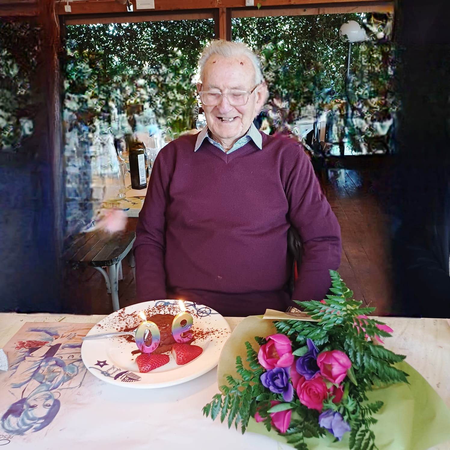 Per i suoi 90 anni sono proprio i figli le nuore Francesca e Simona, i nipoti tutti, a fargli tanti auguri.