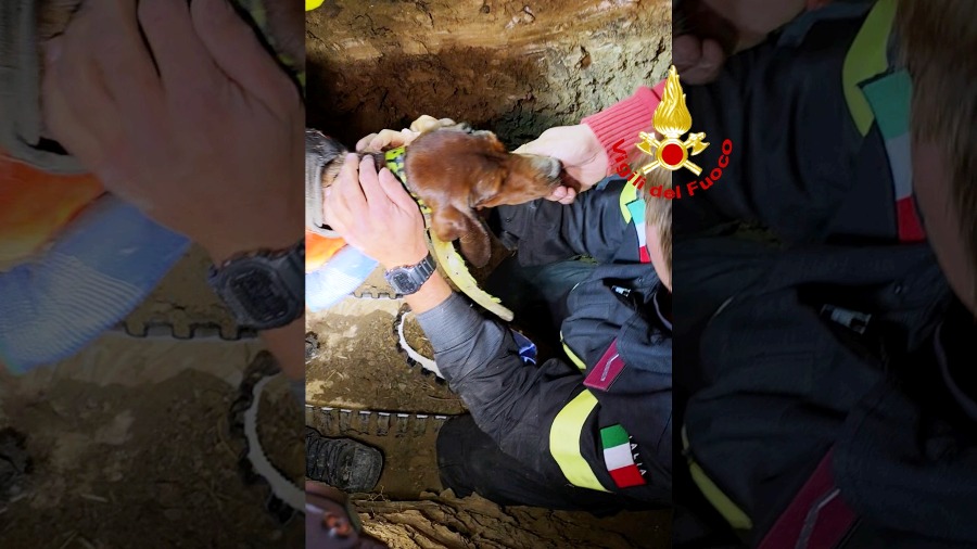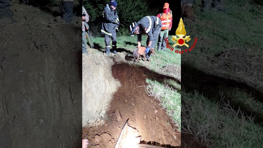 Un escavatore, una videocamera per ispezionare e circa nove ore di intervento: per riconsegnare il cane al proprietario attorno alla mezzanotte di ieri