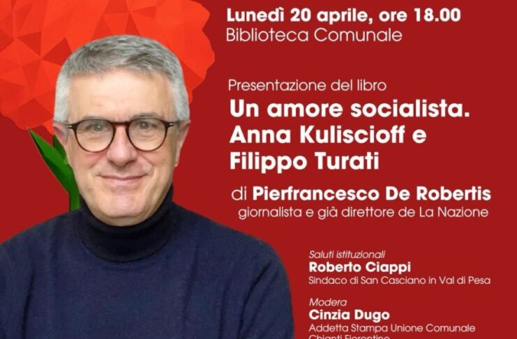 “Il libro di De Robertis che siamo felici di accogliere nella nostra biblioteca nella formula a noi particolarmente cara, quella dell’incontro diretto tra lo scrittore e il pubblico – dichiara il sindaco Ciappi – si offre di accompagnarci in un viaggio che lambisce il Novecento con la tenerezza di un amore intenso, infarcendolo di passioni, sogni, ideali politici, un percorso a ritroso che accende una luce speciale sul legame profondo, accarezzato dal desiderio di eternità, che unì la coppia di intellettuali, Anna Kuliscioff e Filippo Turati, due figure della scena politico-culturale che incisero concretamente nel contesto storico in cui vissero e che meritano di essere ricordate, approfondite, narrate”.